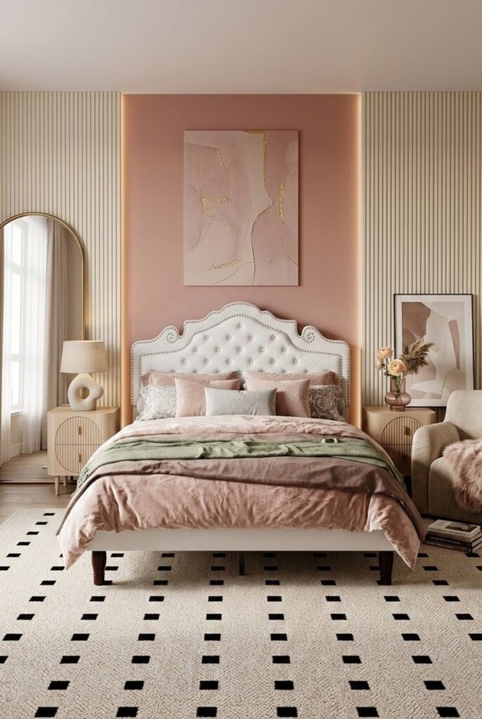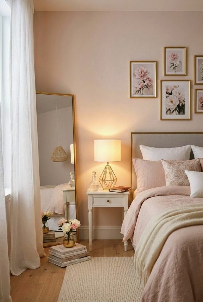 Feminine bedroom decor ideas is all about creating a space that feels soft, calm, and a little romantic without trying too hard. It’s not just about pink — it’s about warm lighting, delicate textures, subtle gold touches, and details that make the room feel personal.