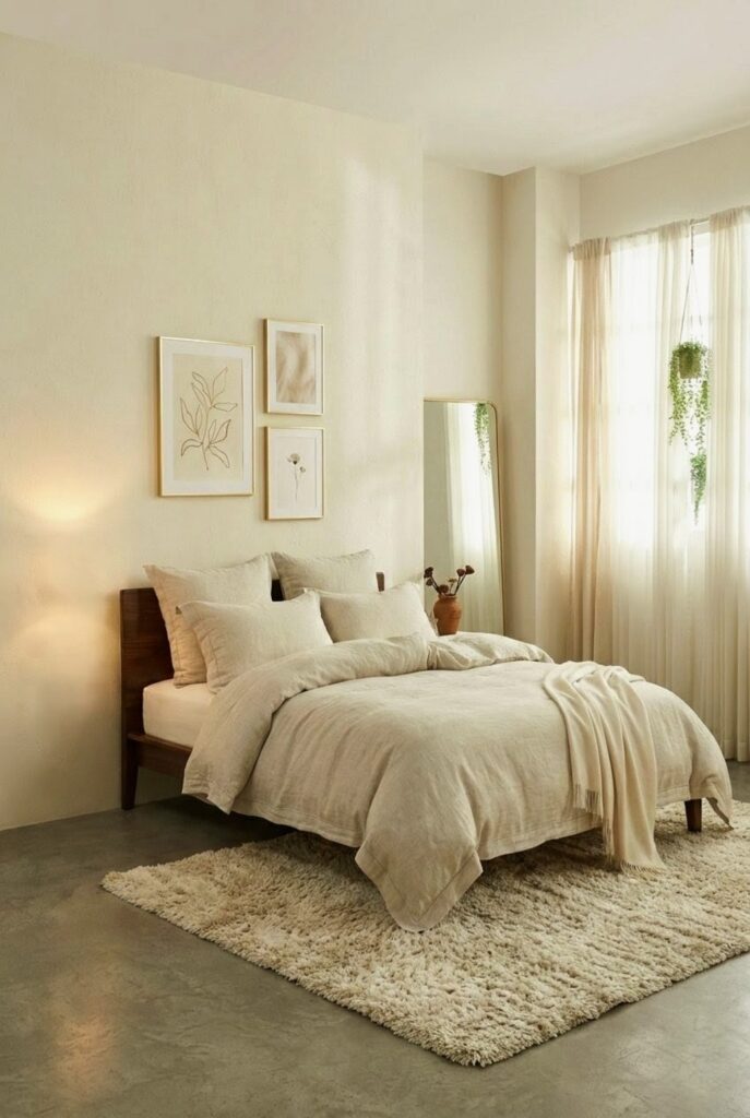 There’s something about an all-neutral bedroom that just feels calm the moment you walk in. The soft beige tones, layered pillows, and natural textures make the space feel relaxed but still put together. It doesn’t try too hard — and that’s exactly why it looks expensive.